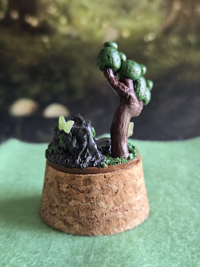 🟩 Matériaux : pâte polymère (fimo), cloche en verre, base en liège