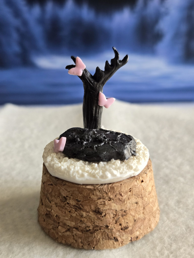 🟪 Matériaux : pâte polymère (fimo), cloche en verre, base en liège