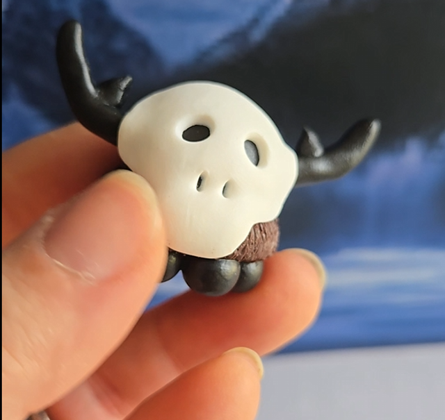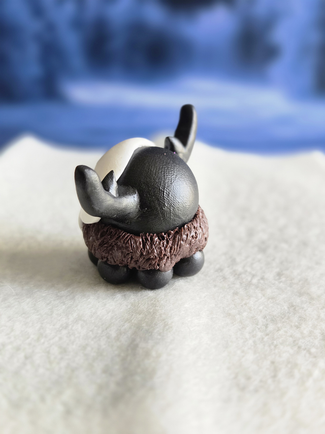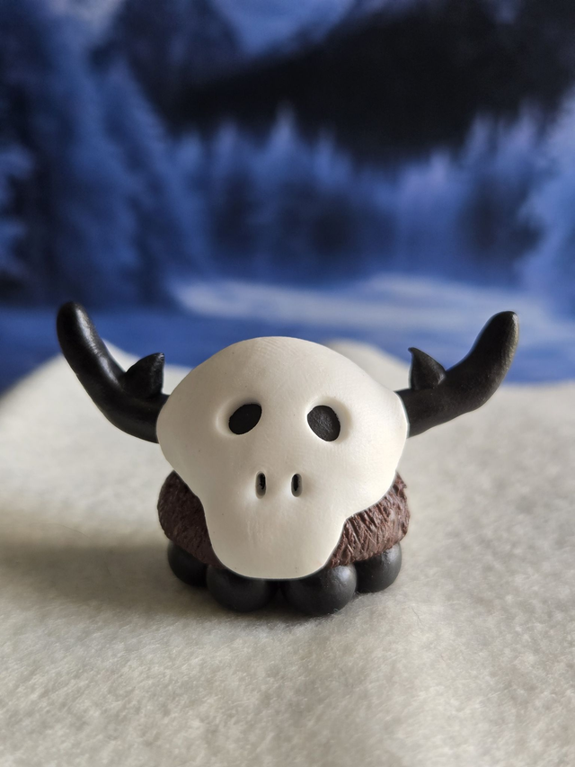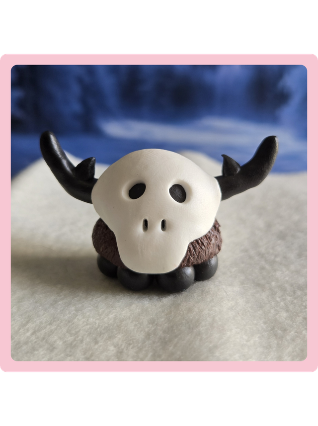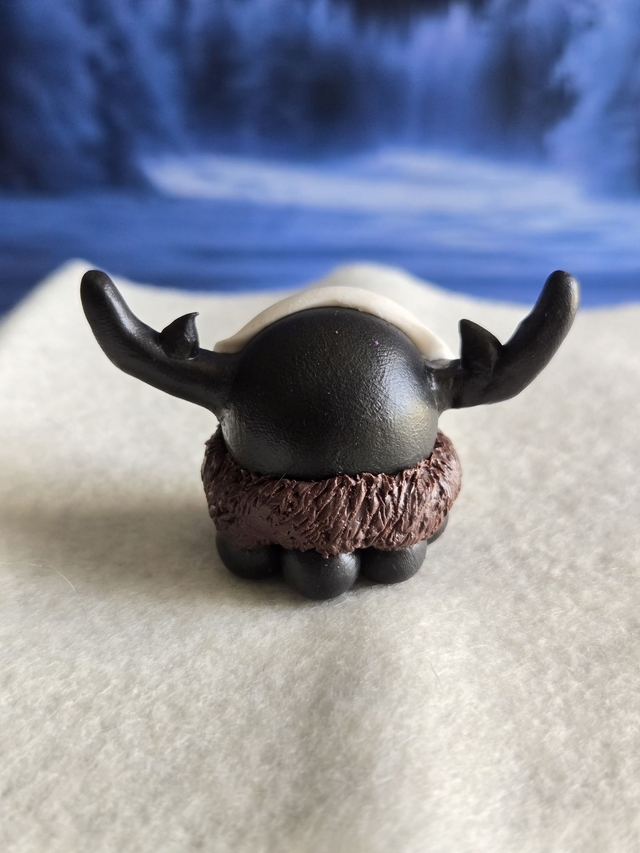 Conçu pour ĂȘtre une figurine simple. Je peux, Ă votre demande la monter en porte clĂ© (les cornes sont renforcĂ©es par une tige mĂ©tallique je ne peux cependant pas garantir sa pĂ©rennitĂ© en cas de montage en porte clĂ©).