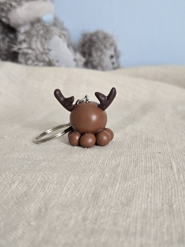 Ce mignon petit renne a garé son traîneau pour venir illuminer ton trousseau.